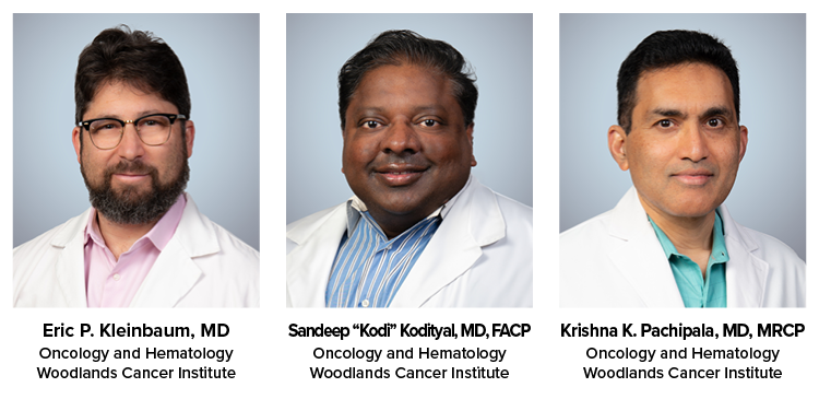 Board-certified medical oncologists, Eric P. Kleinbaum, MD, Sandeep “Kodi” Kodityal, MD, FACP, and Krishna K. Pachipala, MD, MRCP are the physicians at the newly expanded Woodlands Cancer Institute suite in Conroe, while Board-certified radiation oncologist Jason Berilgen, MD continues to see new and existing patients in the same building at 603 Conroe Medical Drive, in Suites 100 and 110. The newly expanded clinic in Suite 160 offers four private exam rooms that provide dedicated space for patient-physician conversations and 12 infusion chairs for patients receiving certain therapies as part of their treatment plans. The new suite is also equipped with an onsite laboratory for immediate blood draws and other necessary procedures.