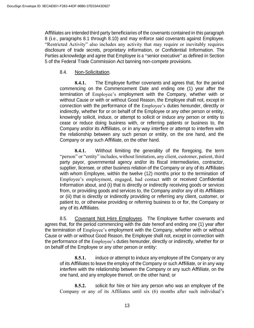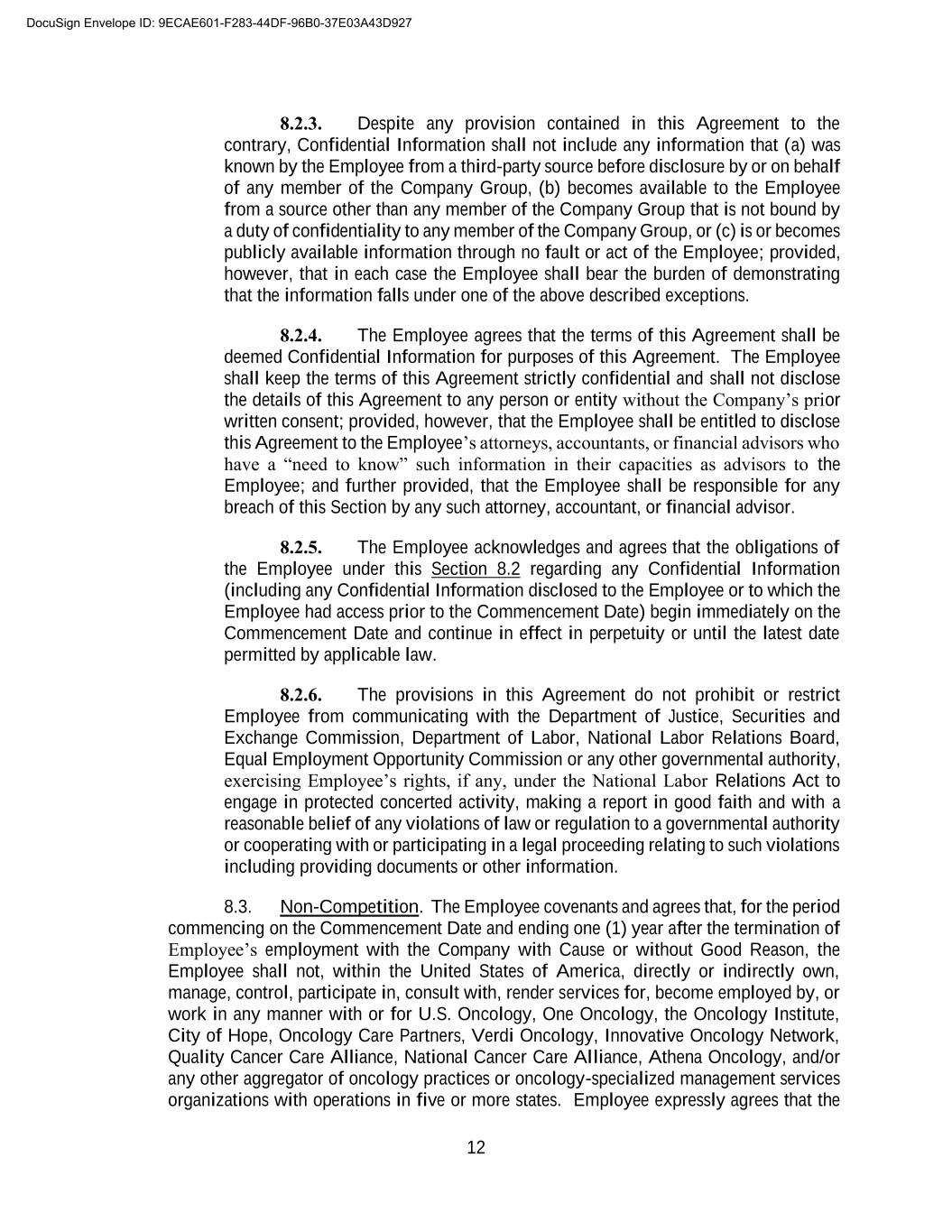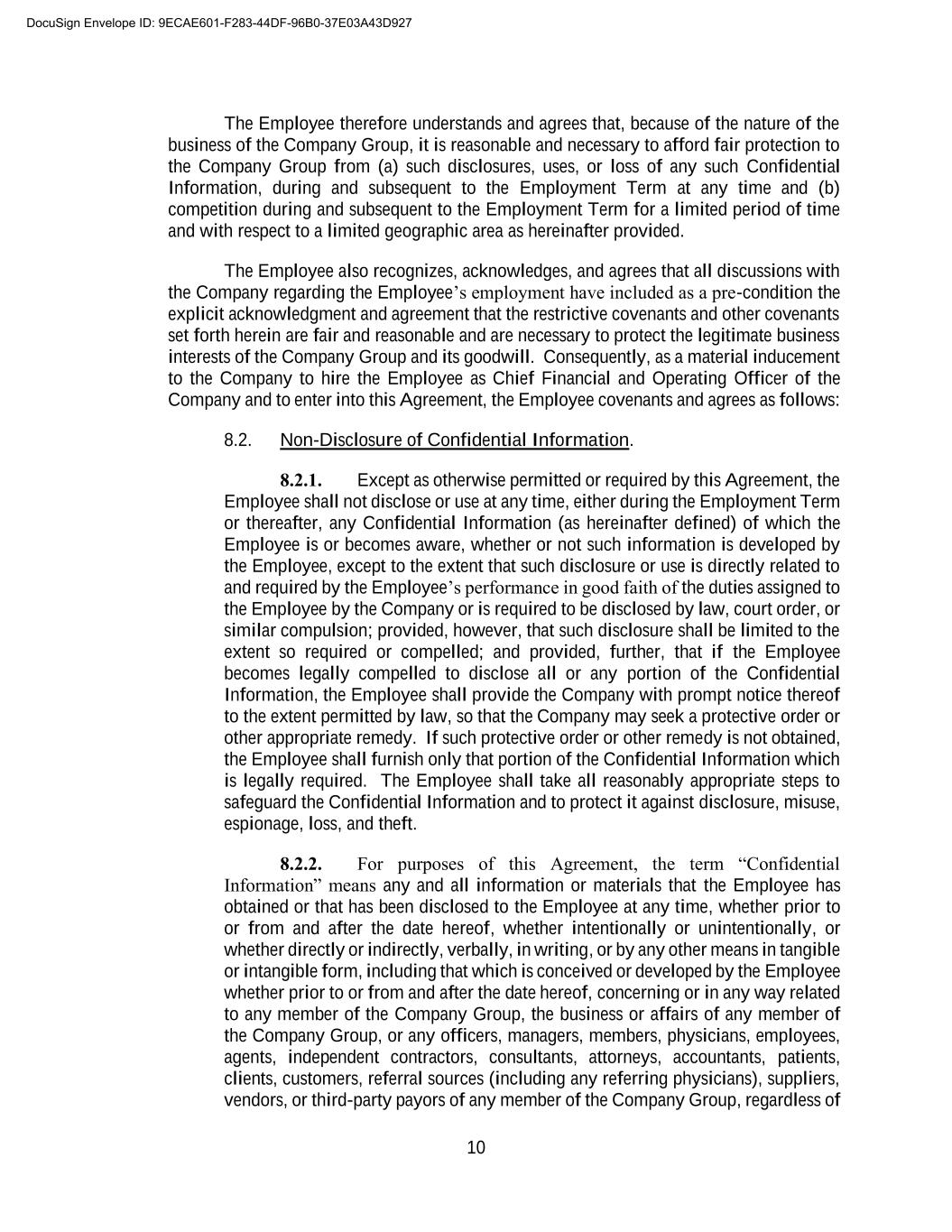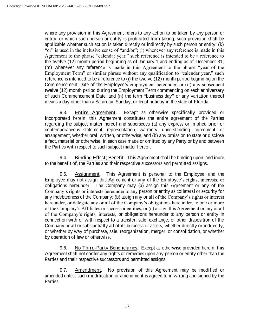 B-2 3. I have been advised to consult independent legal counsel before signing this Release, and I hereby represent that I have executed this Release after having the opportunity to consult independent counsel and after considering the terms of this Release for at least twenty-one (21) calendar days (although I may choose to voluntarily execute this Release earlier). I further represent and warrant that I have read this Release carefully, that I have discussed it or have had reasonable opportunity to discuss it with my counsel, that I fully understand its terms, and that I am signing it voluntarily and of my own free will. 4. I acknowledge that the consideration for this Release is consideration to which I would not otherwise be entitled and is in lieu of any rights or claims that I may have with respect to any severance benefits or any other amounts or remuneration from the Company. 5. This Release shall not become effective until the eighth (8th) day following the date on which I have executed it, provided that I have not revoked it, and I may at any time prior to that effective date revoke this Release by delivering written notice of revocation to the Company pursuant to applicable provisions of the Agreement. 6. This Release may not be amended or modified except by a writing signed by the Company and me. This Release shall be governed by and construed in accordance with the laws of the state of Florida without regard to principles of conflicts of laws thereunder. 7. The Company agrees that, on behalf of Company, Company’s senior management (“Senior Management”) shall not, whether verbally, in writing, electronically, or by any other form of communication, make false and/or harmful statements regarding, or impugn the reputation or character of the Employee. Nothing in this paragraph prevents Senior Management from truthfully giving full and complete deposition or trial testimony, or otherwise appearing in any proceeding as a result of a duly served subpoena or deposition notice. 8. By signing this Release, Employee admits and agrees that: a. he has read the Release; b. he understands it is legally binding, and is hereby advised to review it with a lawyer of his choice prior to executing this Release; c. he realizes and understands the release covers all claims, demands, and causes of action against Releasee, including age discrimination claims under the ADEA; d. he understands the terms of the Release, he is signing voluntarily and with the full understanding of its consequences, and he has not been forced or coerced in any way; e. he is hereby advised that he may take up to twenty-one (21) days in which to consider this Release; and f. he is hereby advised and understands that he may revoke this Release for a period of seven (7) days following the date of its execution, and that this Release shall not DocuSign Envelope ID: 9ECAE601-F283-44DF-96B0-37E03A43D927